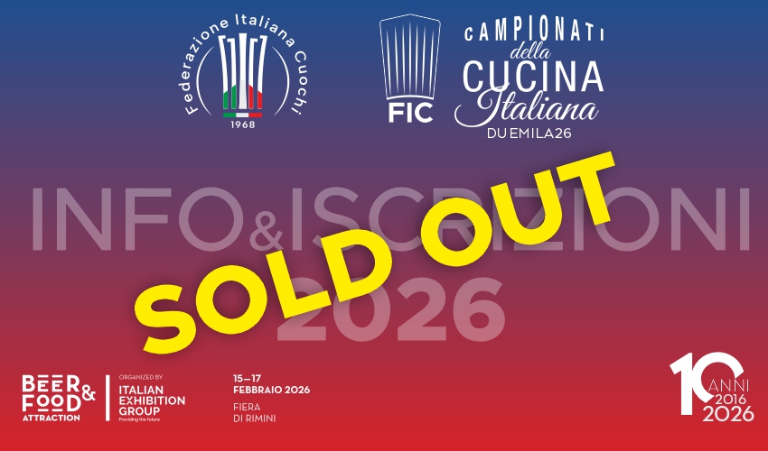 Sold out per le competizioni dell’edizione 2026 dei Campionati della Cucina Italiana!I posti sono andati esauriti prima ancora della chiusura delle iscrizioni e la richiesta è stata così alta da creare una lista d’attesa Un risultato straordinario che conferma l’entusiasmo e la passione per la grande cucina italiana. Ci vediamo a Rimini!