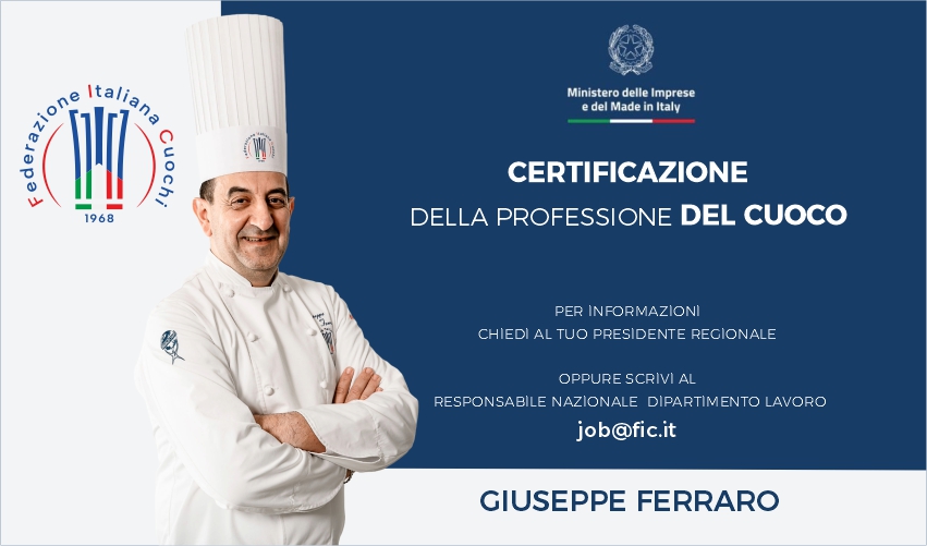 La Federazione Italiana Cuochi è stata iscritta nella II Sezione dell’elenco del Ministero delle Imprese e del Made in Italy ai sensi della Legge 4/2013.