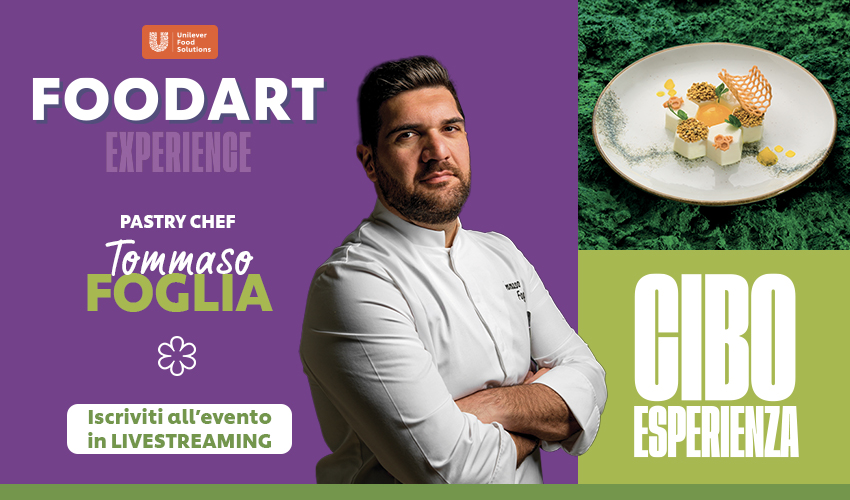 Mercoledì 18 marzo alle ore 14.30, formazione gratuita con il Pastry chef stellato Tommaso Foglia che presenterà le sue nuove ricette inserite all’interno del ricettario FoodArt 2026 di Unilever Food Solutions.