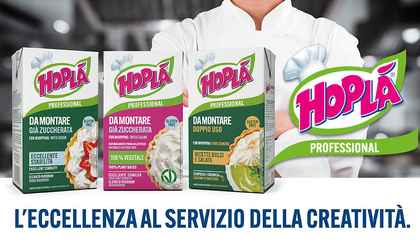 Disponibile sia a base vegetale con le proteine del latte sia 100% vegetale, Hoplà Professional è pensata per garantire stabilità, gusto e versatilità.